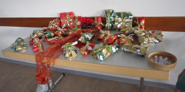 Natürlich hatte der Nikolaus schon vorab Geschenke für alle Besucherinnen vorbeigeschickt. Sie waren rechtzeitig im Gemeindehaus eingetroffen. Allerdings war eine Bedingung darin geknüpft. Es mussten 3 Steine mit gleicher Farbe gefunden und dann noch eine „sechs“ gewürfelt werden, ehe man ein Los ziehen konnte und sein entsprechendes Geschenk erhielt. Dieses Spiel machte allen viel Spaß. Die letzten drei Frauen wurden von allen anderen kräftig angefeuert nun endlich eine „sechs“ zu würfeln, damit man dann zusammen die Geschenke auspacken durfte. Auch die Mitarbeiterinnen bekamen von den Besucherinnen ein schönes Präsent. Vielen Dank dafür.