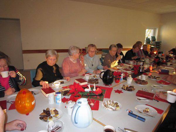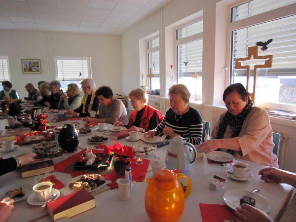Zur diesjährigen Adventfeier fanden sich 26 Besucherinnen im Gemeindehaus in Holzhausen ein, so dass an unserer festlich geschmückten Tafel kein Platz mehr frei blieb. Das hat uns, die Mitarbeiterinnen, sehr gefreut. Nach der Begrüßung, einem Adventlied und dem Gedicht „Weihnachtswunschzettel aus dem Jahre 1947“ hörten wir zwei Geschichten. Zum einen eine historische wahre und nachdenkliche Erzählung „Erinnerungen an Weihnachten nach dem Krieg“ und eine lustige „die Engel Ramona und Andrea“.