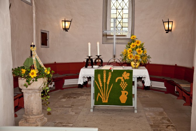 Den Konfirmandinnen und Konfirmanden, die nicht mehr dabei sein konnten, weil sie bereits verstorben sind, gedachte man im Gebet, und Rosemarie Schäfer zündete eine Kerze an. Manfred Schäfer bedankte sich am Ende des Gottesdienstes bei Rosemarie Schäfer und Elisabeth Scharfe mit einem Blumengesteck für die Organisation des Festes. Ebenso wurde Pfarrer Kraft mit einer guten Flasche Wein bedacht.