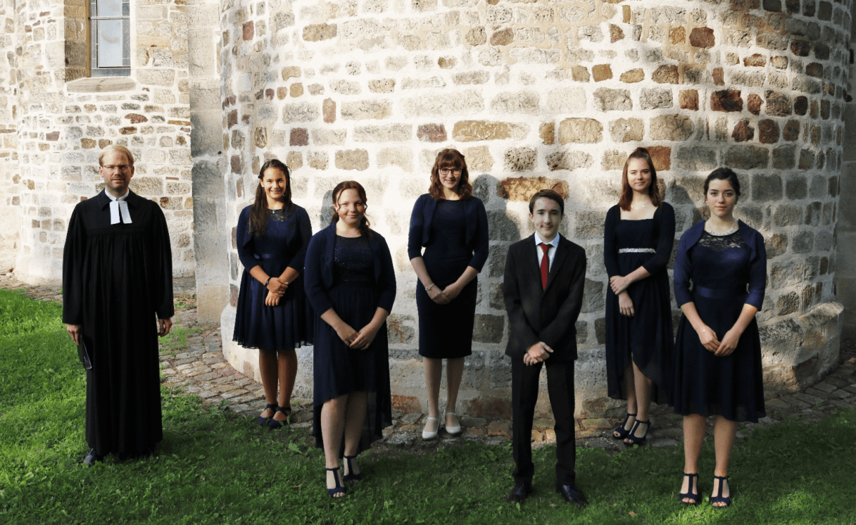 Von links nach rechts: Pfarrer Christian Brandt, Emily Fürst, Lilli Wolfram, Hanah-Sofie Flöther, Kai Eckhardt, Mia Bertram, Levke Mentzel