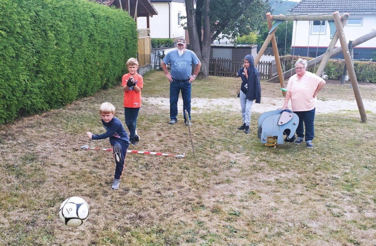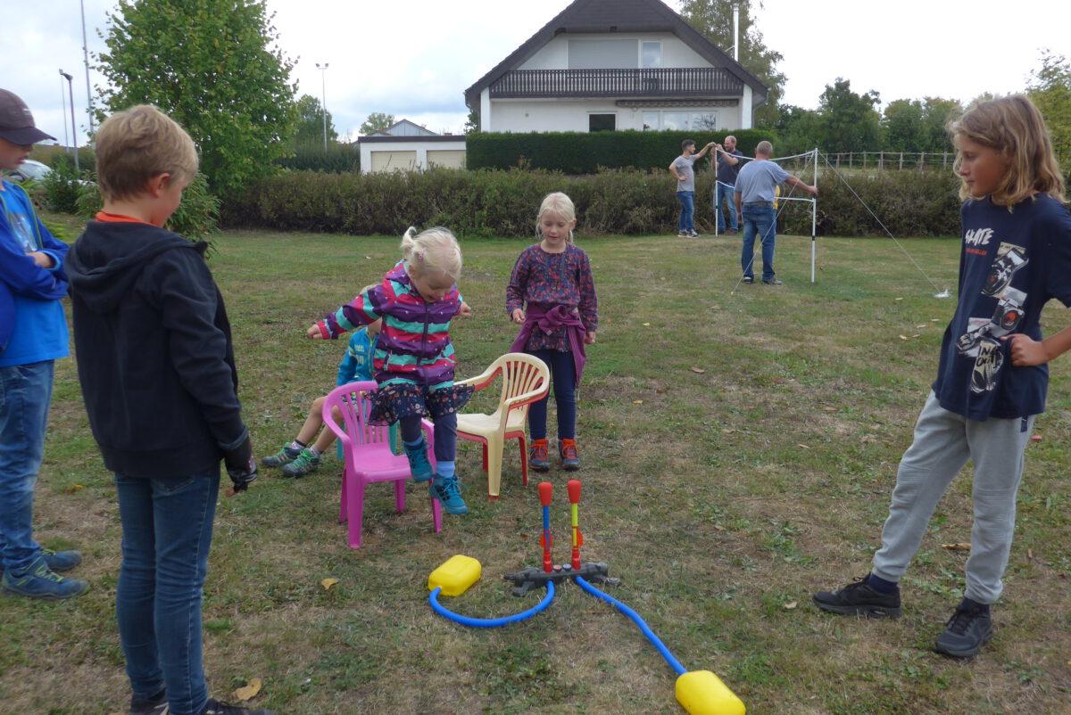 Danach erklärten Mirko Fleck und Monika Neumann-Täubel den geplanten Ablauf und die anstehende Action-Tour durch Holzhausen. Auf zwei Spielplätzen in Holzhausen waren unterschiedliche Stationen mit verschiedensten Bällen aufgebaut, die von Susanne Walter und Sabine Kullmann betreut wurden. Eigentlich war auch ein Besuch der Kegelbahn im Bürgerhaus eingeplant (betreut durch Jeanette Vocht), doch leider war diese, aufgrund eines technischen Defektes, kurzfristig nicht zu nutzen. Aufgeteilt in drei Gruppen konnte sich Jung und Alt an den angebotenen Aktionen ausprobieren und austoben.