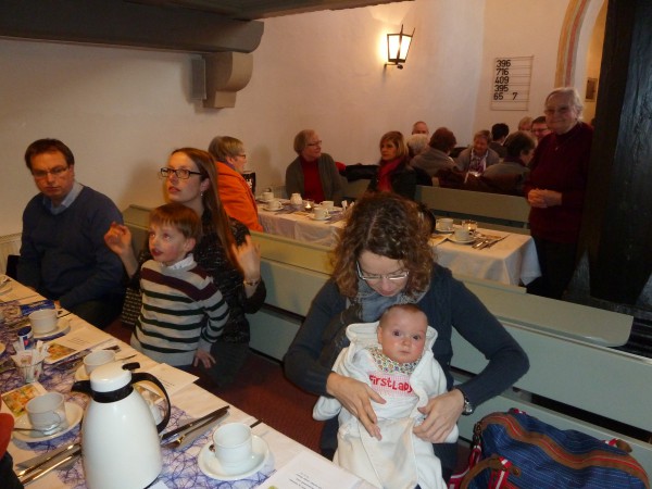 Vergangenen Samstag verwandelte sich die Johanniskirche ein Holzhausen in die „gute Stube“ der Gemeinde, als etwa 50 Menschen zum ersten Gemeindefrühstück kamen.