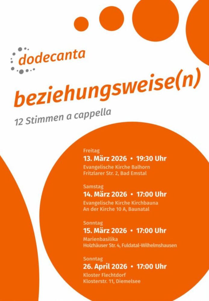 Der Förderverein Marienbasilika lädt ein zum Konzert: „dodecanta – beziehungsweise(n) – 12 Stimmen acappella“ am 15. März um 17.00 Uhr