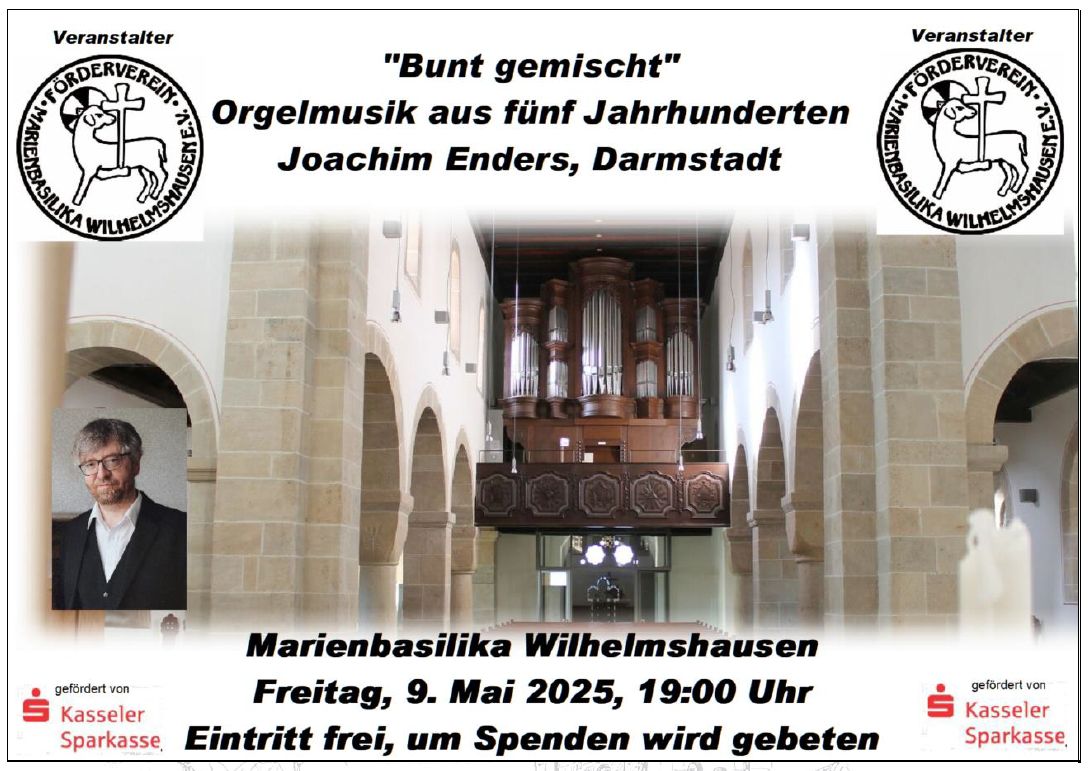 … in der Marienbasilika Wilhelmshausen. An der Orgel wird Joachim Enders aus Darmstadt zu Gast sein! Weitere Infos entnehmen Sie bitte dem unteren Flyer.