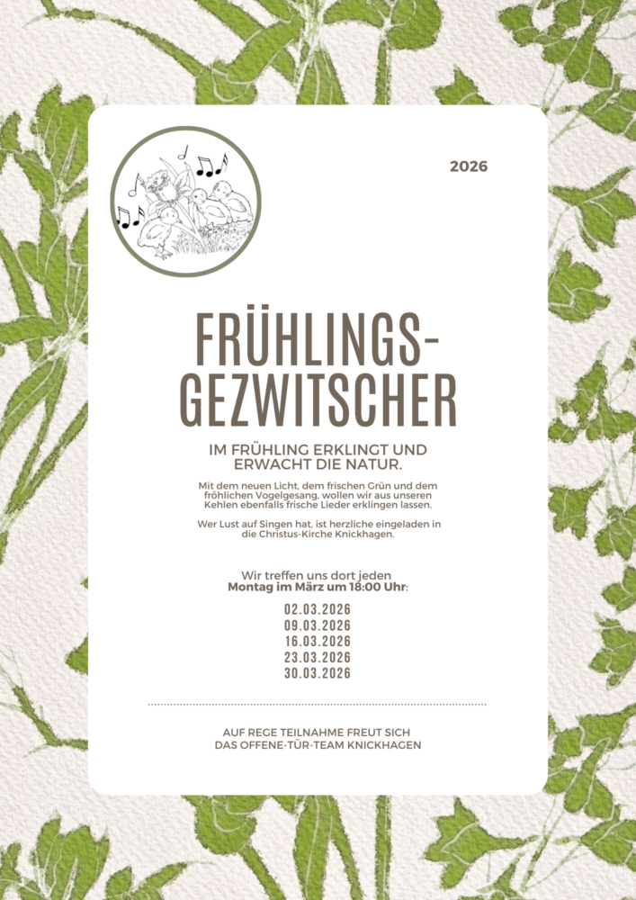 Wer Lust auf Singen hat, ist herzliche eingeladen in die Christus-Kirche Knickhagen.