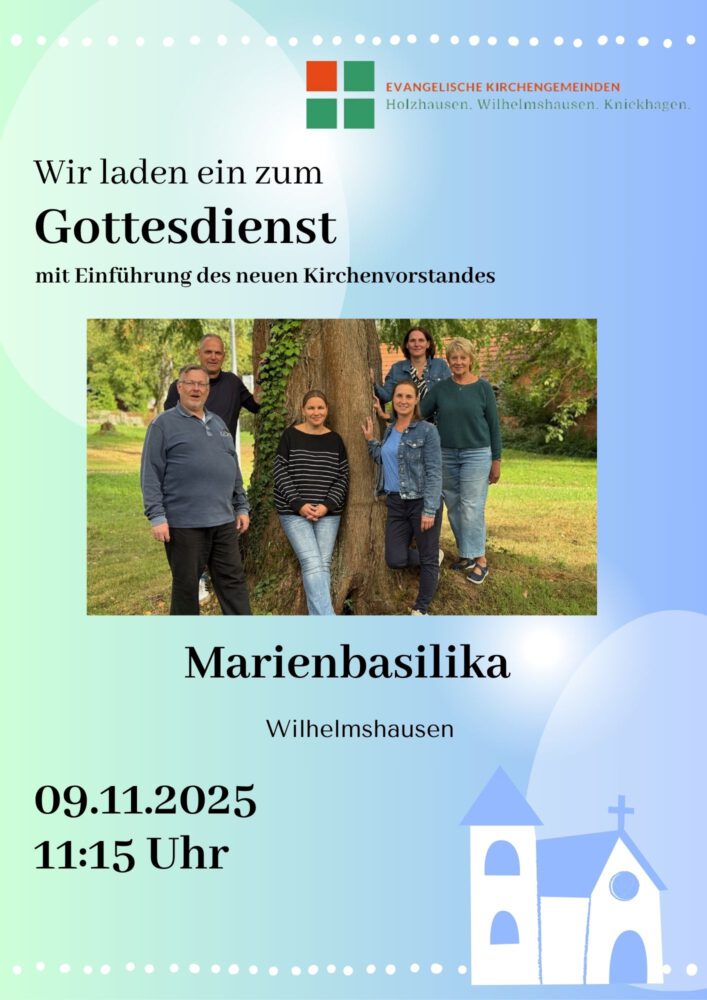 Gottesdienst am 09.11.25 um 10.00 Uhr in Holzhausen und um 11.15 Uhr in Wilhelmshausen mit Einführung des neuen Kirchenvorstandes