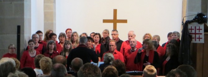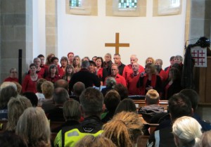 … und dann Gottesdienst. Mit der Lederhose in der Kirchenbank. Und volles Haus. Gleichzeitig war es auch ein Konzert: Der Pro-Gospel-Chor aus Warburg prägte den Gottesdienst.