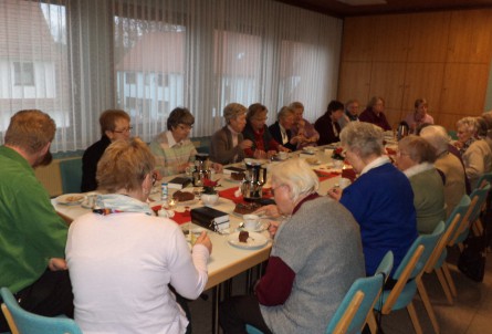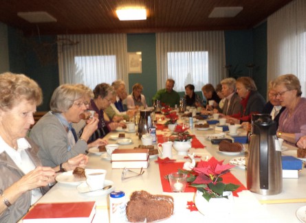 Eine große Tafel, adventlich geschmückt, bildete den Rahmen für unsere letzte „Offene Tür“ im Jahr 2015. Zweiundzwanzig Besucherinnen ließen sich Kaffee, Stollen und Gewürzkuchen schmecken und warteten gespannt, was noch kommen würde.