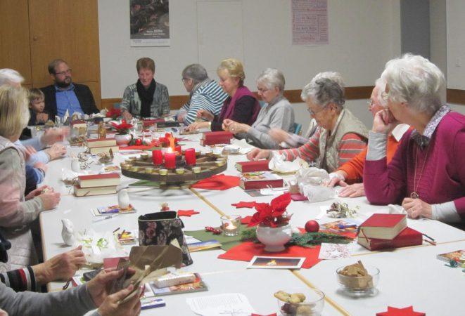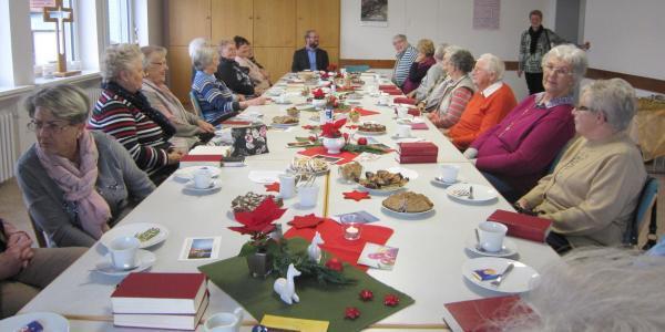 Zum Adventsnachmittag der “Offenen Tür“ Holzhausen trafen sich 24 Besucherinnen im Gemeindehaus. Die festlich dekorierte Tafel sorgte für vorweihnachtliche Stimmung und die vielen Leckereien, wie Stollen, Plätzchen, Nussecken, Lebkuchengebäck und Gewürzkuchen wurden zur Überraschung für die Besucherinnen. Nochmals vielen Dank an die fleißigen Bäckerinnen. Zu Kaffee und Tee ließen wir uns dann diese Köstlichkeiten gut schmecken.