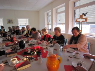 Zum Kaffee und Tee gab es selbstgebackene Plätzchen und Lebkuchen, außerdem Stollen, Baumkuchen und noch anderes weihnachtliches Gebäck. Vielen Dank an die zahlreichen Spenderinnen. Es hat alles sehr gut geschmeckt.