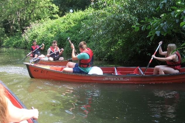 Die erste Tour war sicherlich ein Abenteuer, bei der einige Hürden gemeistert werden mussten. Zuerst konnte ein für den Kanuanhänger wichtiges Schloss nicht geöffnet werden. Später mussten die Kanus in Teamwork um zwei Wehre getragen werden, wo es – wortwörtlich- jede Hand brauchte. Und weil wir als Gruppe relativ langsam vorankamen und die Strecke sehr weit war, benötigten wir ca. 5 ½ Stunden Paddelzeit. Danach hatte sicher jeder Muskelkater.