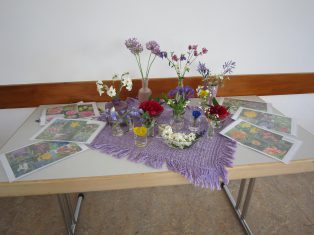 Wir betrachteten und bestimmten die mitgebrachten Blumen und hörten viel Wissenswertes über ihr Vorkommen, d.h. ihr Verbreitungsgebiet, ihre Blütezeit und ihre Pflege sowie ihren Gebrauch als Nahrungsmittel und ihre medizinische Anwendung.