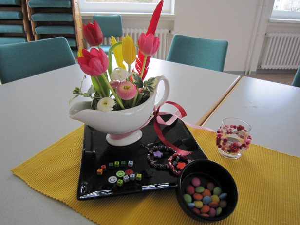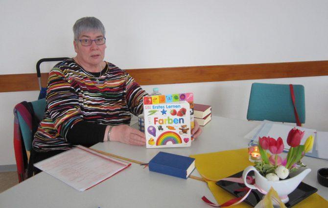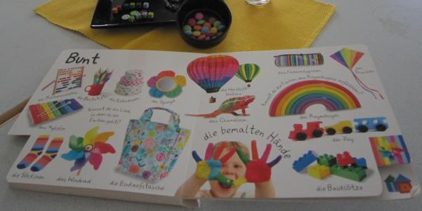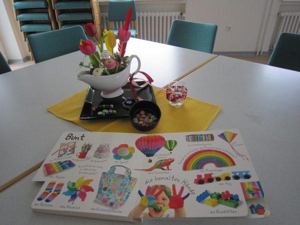Nach Kaffee, Tee und sehr leckerem Kuchen (vielen Dank an die Bäckerinnen) hörten wir eine Geschichte über den Regenbogen. Viele Zitate befassen sich mit Farben.