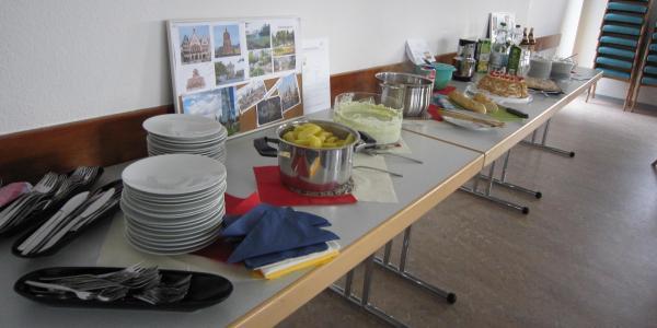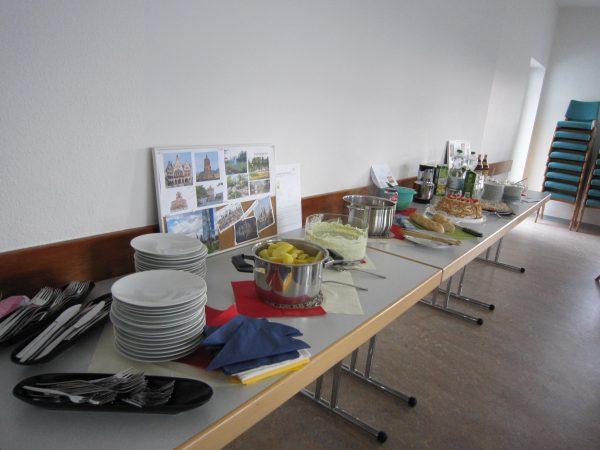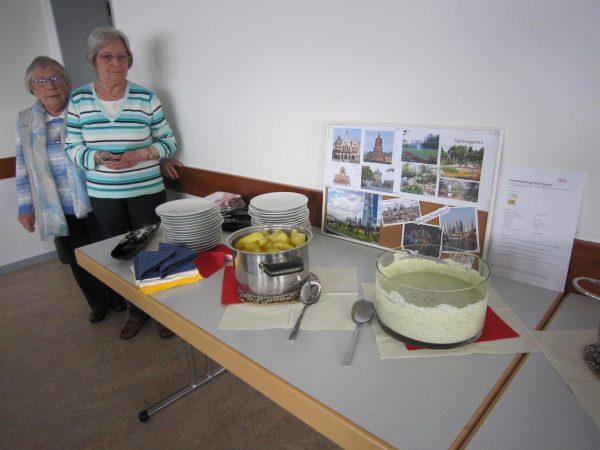 Wir unternahmen gedanklich eine Reise nach Frankfurt, hörten die Geschichte der Stadt und sahen viele Bilder der berühmtesten Sehenswürdigkeiten. Zuvor jedoch probierten wir Spezialitäten aus Frankfurt. Grüne Soße mit Pellkartoffeln, Handkäse mit „Musik“, Frankfurter Würstchen, Frankfurter Kranz und leckere Desserts. Vielen Dank an die Spenderinnen.