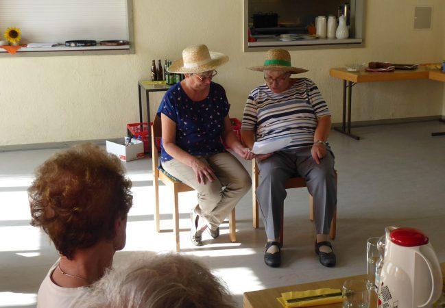Elfriede und Gabi lasen uns schöne Geschichten vor, ein lustiger Sketch, gespielt von Sylvia, Minchen und Gaby, bekam viel Beifall. Natürlich kam das Schnuddeln nicht zu kurz, zur Auflockerung sangen wir alle noch das Holzhäuser Heidelbeerlied und weitere Lieder. Die 2 Stunden gingen so schnell vorbei, nun hieß es Schluss zu machen. Wir bedankten uns bei den fleißigen Küchenhilfen und bei Silvia für die gute Vorbereitung und wünschten Allen ein gutes Nachhause kommen.