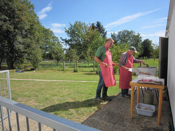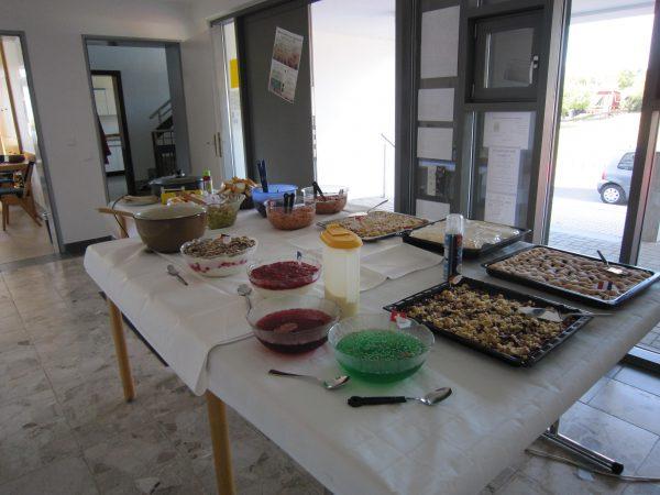 Die Besucherinnen der “Offenen Tür“ Holzhausen als Gastgeberinnen hatten ein reichhaltiges Buffet zusammengestellt. Es gab tolle herzhafte Salate und Bratwurst sowie leckeren Kuchen und köstliche Desserts. An dieser Stelle nochmals vielen Dank an alle Spenderinnen für ihre große Mühe und an die drei fleißigen Bratwurstgriller. Nach dem Essen wurde ausgiebig „geschnuddelt“, denn man sieht sich ja nicht so oft.