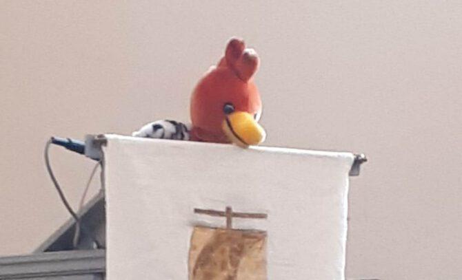 Mit diesen Worten wurde Pfarrer Christian Brandt am Ostersonntag in der Kirche von dem kleinen Wiedehopf „Wido“ begrüßt, der sein Nest in der Kanzel eingerichtet hatte.