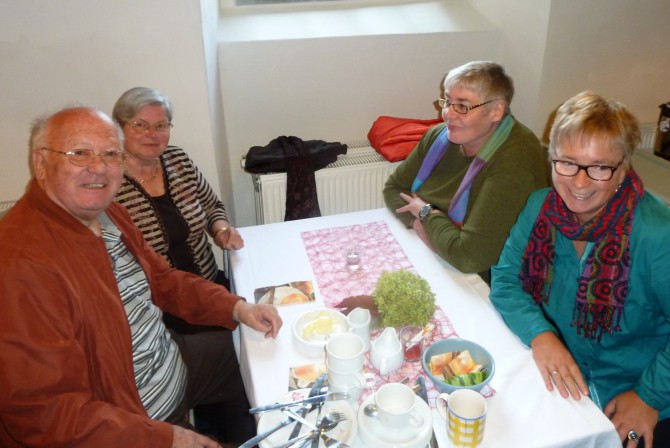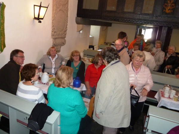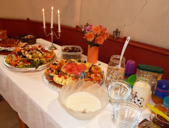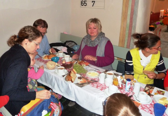 Am Samstag dem 10. Oktober hatte das MEA-Team zum zweiten Gemeindefrühstück in die Holzhäuser Johanniskirche eingeladen, diesmal im herbstlichen Rahmen. Im Altarraum war ein reichhaltiges Buffet aufgebaut und in den Kirchenbänken saßen sich die Gäste aus Holzhausen und Wilhelmshausen an schön gedeckten Tische gegenüber.