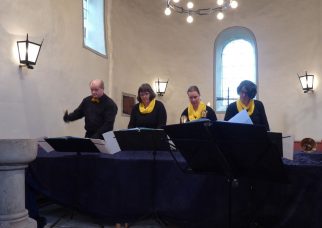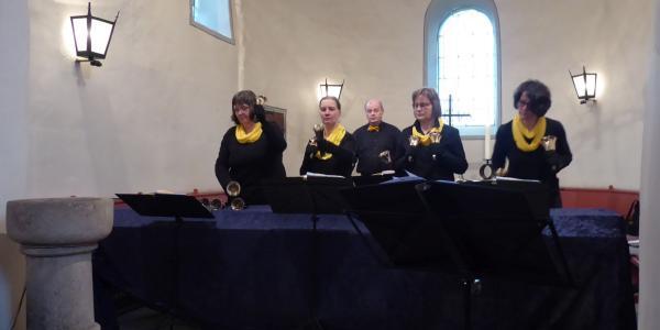 Begleitend, einstimmend und zum Nachdenken, manchmal auch Schmunzeln wurden kleine Lesungen und Vorträge eingestreut, die das Konzert abrundeten. Auch das Publikum trug mit einem frischen und flotten Lied (Tanzen und Springen) aus dem neuen EG-Plus zum gesungenen Gotteslob und Wertschätzung der Kirchenmusik bei. Die Stücke Ebbe und Flut und das als musikalisches Lesestück inszenierte Jona und der Wal verführte zum Augenschließen und sich ganz Hineindenken in die vorgetragenen klangstarken Bilder. Dagegen wippte so mancher Fuß beim schwungvollen Can Can von Jacques Offenbach mit und die Darbietung mit zahlreichen Glocken von nur zwei Vortragenden wurde bewundernd und mit Erstaunen gefolgt. Das Gospellied „Like a river glorious/Wie ein Fluss, herrlich ist Gottes Frieden“ setzte wiederum einen schönen Gegensatz. Es gab mit den vorangegangenen Gedanken zum Pinguin Einiges zum Nachdenken auf über vermeintliche „Fehlkonstruktionen“, unser Urteilsvermögen und das es manchmal auch vom Umfeld abhängt, ob das was man gut kann überhaupt zum Tragen kommt. Dass der Handglockenchor gut und klangvoll spielen und verzaubern kann und das Umfeld und die Akustik der kleinen Johanniskirche dafür gut geeignet war, stand beim Applaus für den Handglockenchor außer Frage. Dankbar und erfüllt von dem Musikgenuss der besonderen Instrumente wurde das Lied „Give thanks“ auch gleich nochmal gerne als Zugabe angenommen.