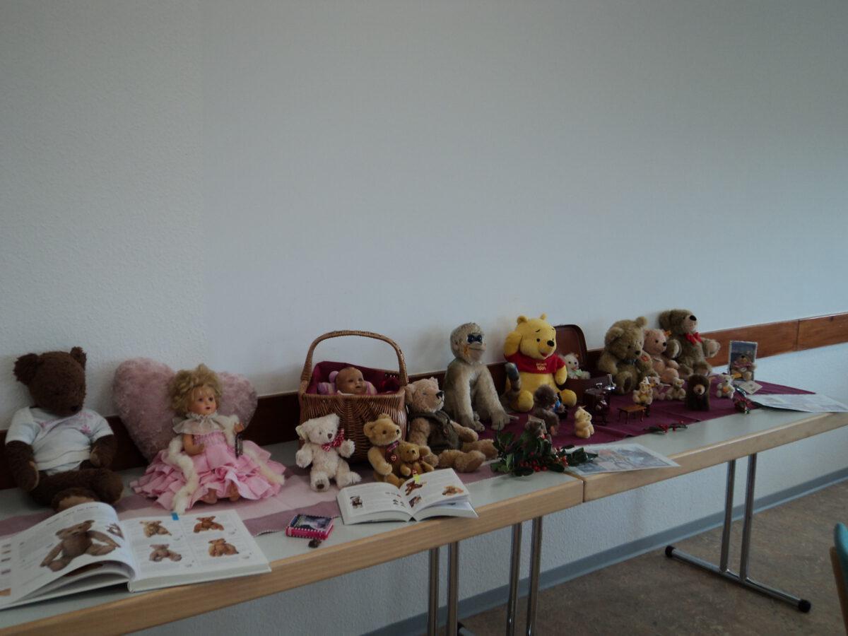 In einer kleinen Ausstellung konnten unsere Besucherinnen verschiedene Steiff-Teddybären bewundern und in einem großen Teddykatalog nachschauen wie sich die Bären, vom ersten Bär aus 1906 bis zum heutigen Bären, gewandelt haben.