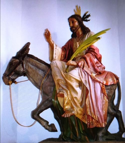Er wird mit Palmenzweigen empfangen und bejubelt: „Gelobt sei, der da kommt im Namen des Herrn, der König von Israel!“ Und voller Begeisterung gehen sie ihm entgegen. Die Palmzweige unterstreichen ihre Euphorie. Jesus kommt nicht auf einem hohen Ross daher, wie es Könige normalerweise tun, sondern ganz anders: Bescheiden und sanftmütig, auf einem unscheinbaren Esel, ein Zeichen seiner friedlichen Mission. Jesus sitzt auf dem Esel und sagt kein Wort. Esel, leidensfähige, geduldige Tiere. Sie sind Reittiere als auch Lastenträger.