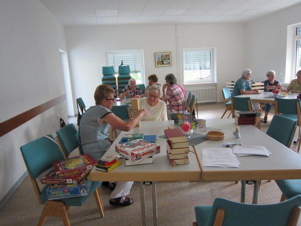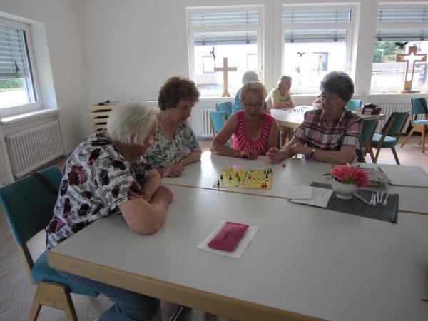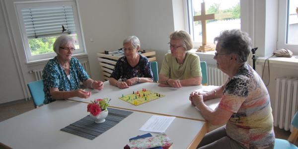 Zur letzten „Offenen Tür“ vor den Sommerferien trafen sich 15 Besucherinnen zum Spielenachmittag im Gemeindehaus.