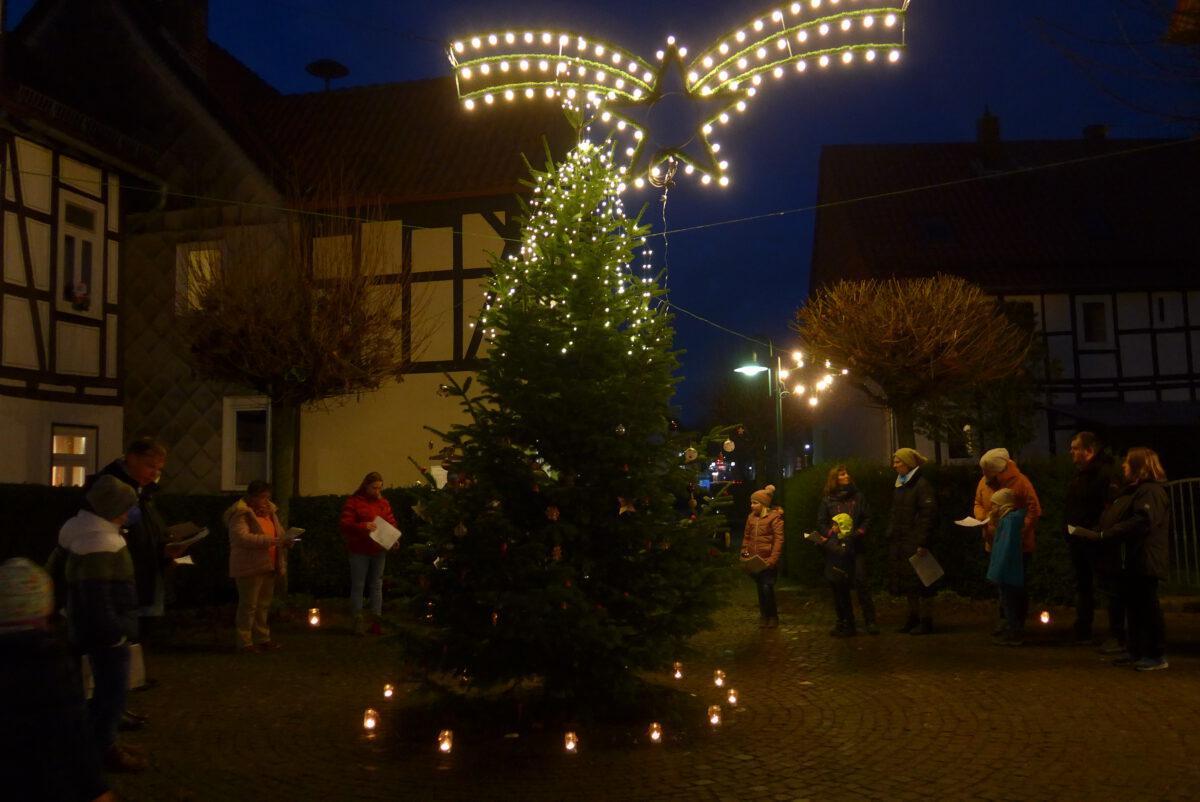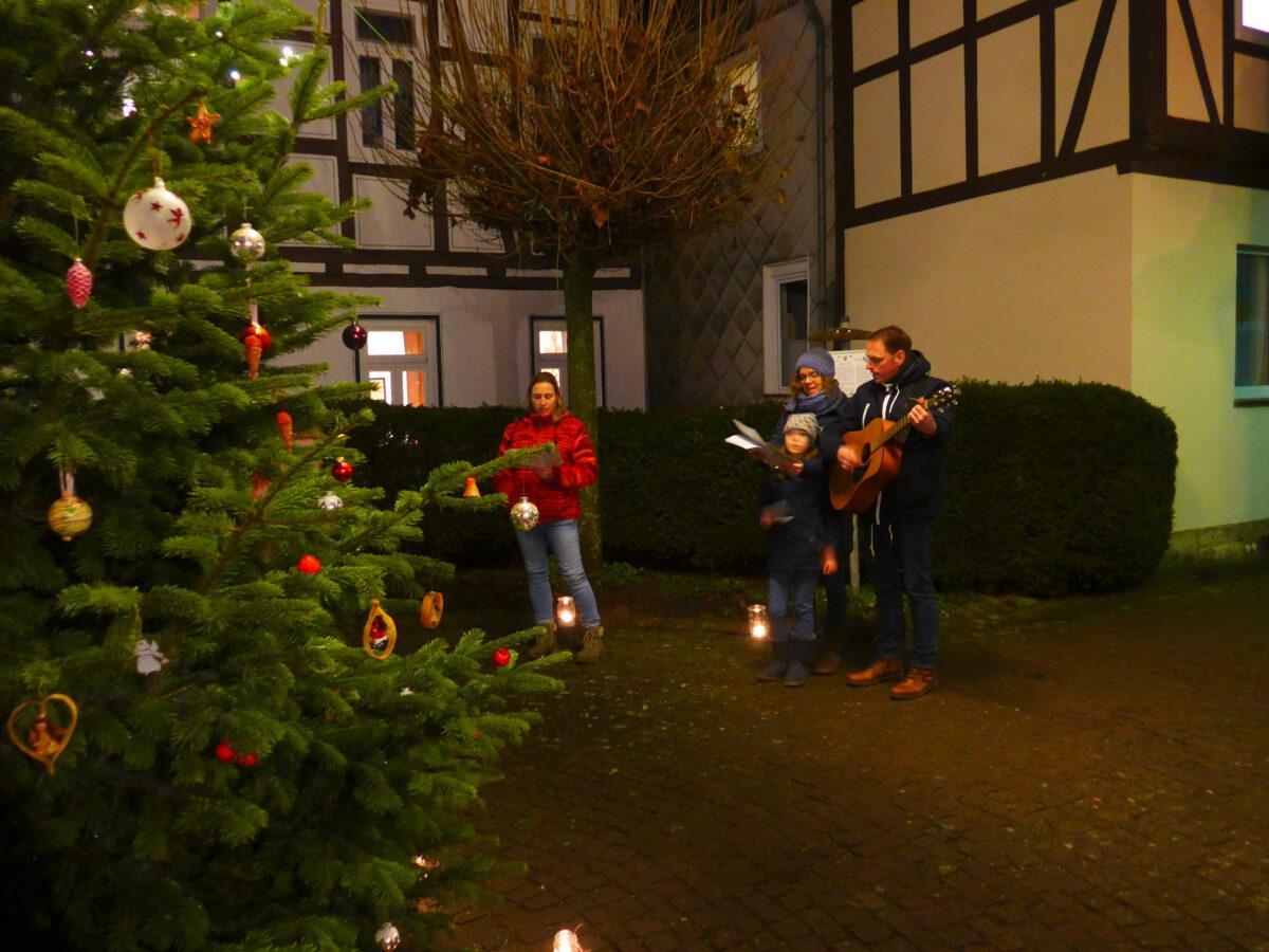 Rund um den (von Gemeindemitgliedern geschmückten) Weihnachtsbaum und unter dem leuchtenden Weihnachtsstern traf man sich in großer Runde vor der Holzhäuser Kirche, um sich gemeinsam auf Weihnachten einzustimmen.