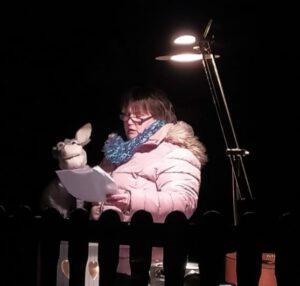 Der Esel Benjamin war ganz aufgeregt und lernte nun Constanze Fleck kennen, die allen vom Krippenweg durch Holzhausen erzählte und zum Krippenspiel-Gottesdienst vor die Holzhäuser Kirche am 24.12.21 einlud. Ganz begeistert entschloss sich Benjamin, Constanze in diesen Gottesdienst zu begleiten und auch dort davon zu erzählen, wie damals in dem kalten und einfachen Stall das Jesus-Kind geboren wurde.